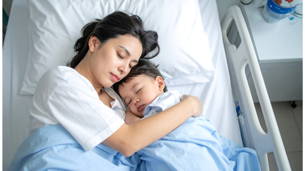 すぐ隣のベッドでは、やっと寝付いたばかりのお子さんや、疲れ切った親御さんが眠っています。